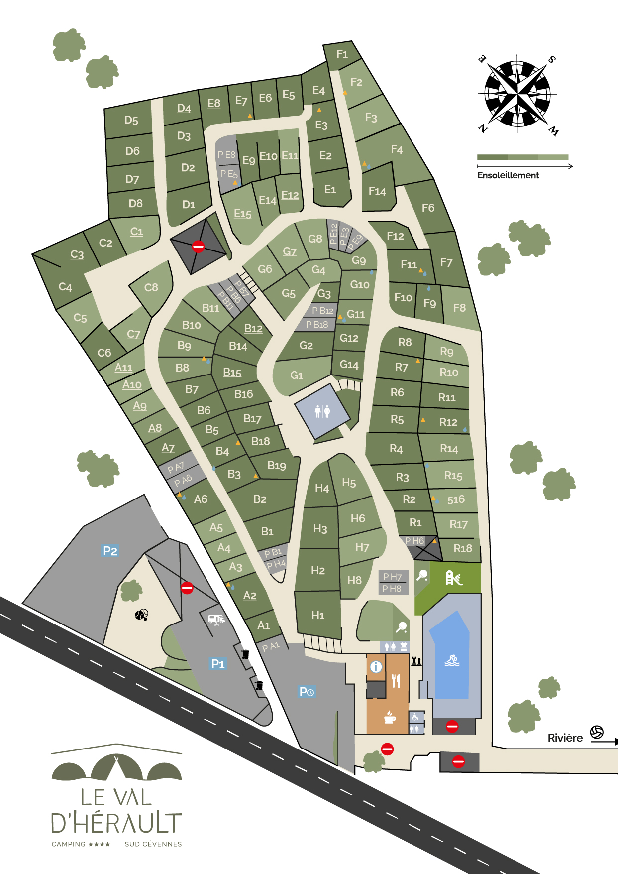 Le Val D’Hérault, à Brissac 34, se situe entre mer et montagne non loin des Causses, dans l’arrière-pays languedocien. Le village de Brissac, surplombé par son château du 11ème siècle est situé à 5km du camping, dispose d’une épicerie, d’un restaurant ainsi que d’une boulangerie qui vous permettront de faire vos courses en toute sérénité.